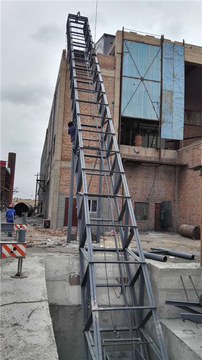 料車在爐頂可自動(dòng)卸料、自動(dòng)返退。在斜橋頂端,主軌兩側(cè)設(shè)有輔助導(dǎo)軌。當(dāng)料車進(jìn)入卸料導(dǎo)軌時(shí),前車輪將繼續(xù)沿主軌前進(jìn),而具有雙踏面的后車輪則沿主軌外側(cè)的輔助導(dǎo)軌上升,使料車自動(dòng)傾翻把料卸入爐頂受料漏斗。當(dāng)料車卸完料后,卷揚(yáng)機(jī)反向旋轉(zhuǎn),空料車則由自重而從卸料導(dǎo)軌自行返退下來。